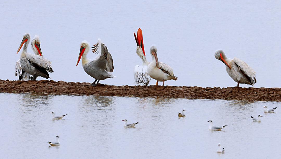 温州作为全省优质水鸟栖息地之一,是全国及全球候鸟迁徙的重要“驿站”。卷羽鹈鹕(Pelecanus crispus)为我国国家一级重点保护野生动物,是大型鸟类,体长1.6-1.8米,常栖息于内陆湖泊、江河与沼泽,以及沿海地带等,为温州越冬候鸟明星物种。为了提升公众爱鸟护鸟意识,温州发布联合温州市自然资源和规划局开展“湿地观鸟之寻找卷羽鹈鹕”林业科普活动。
