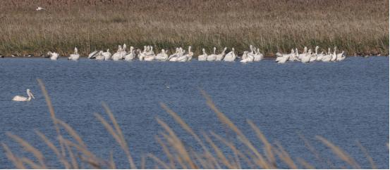 2023年温州市自然资源和规划局携手温州大学开展浙南沿海国家级重点保护水鸟种群调查与监测项目。12月24日,温州大学张永普教授及其团队成员在温州湾瓯飞围垦区进行浙南重点保护水鸟调查时,在一口围塘内记录到卷羽鹈鹕东亚种群77只,这是浙江省近年来在单个地点最大数量的观测纪录。