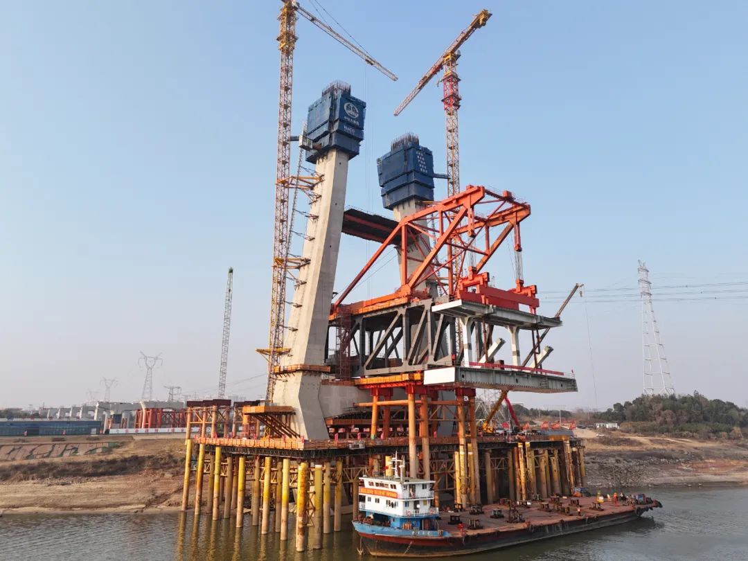 此次架设的钢梁上层宽33.5米,下层宽38.49米,长7.6米,高13.2米,采用航道运输方式,运输距离约360公里,从武汉出发,经长江、鄱阳湖、赣江后,到达吊装位置。