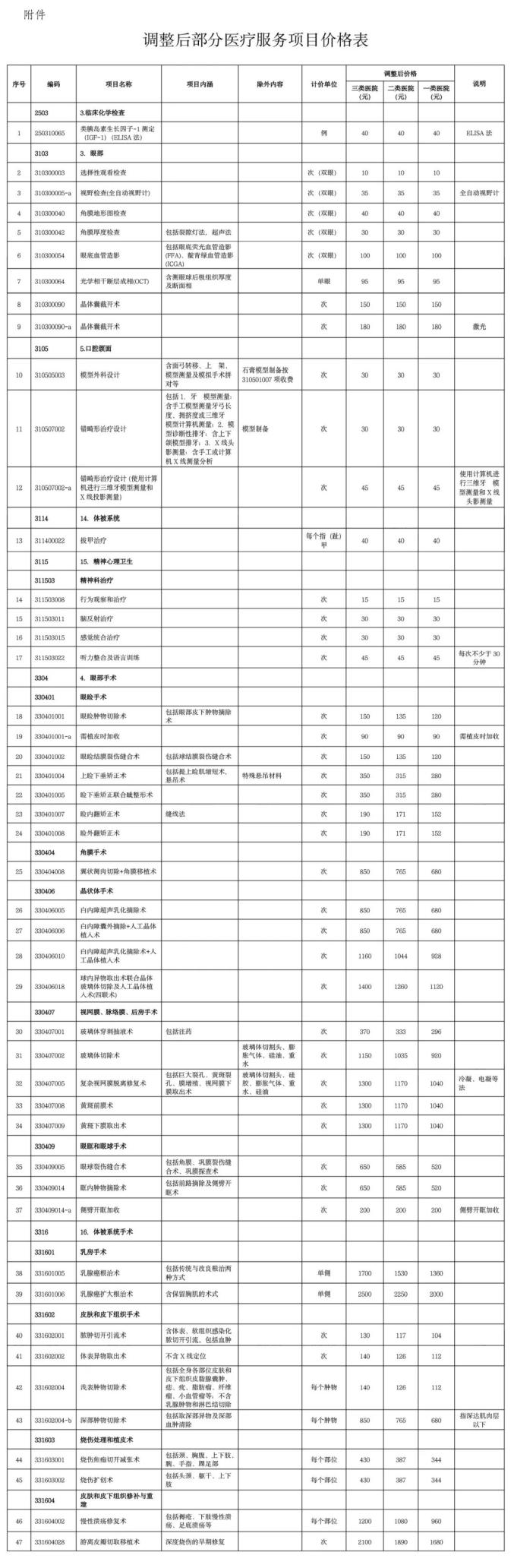 一、调整部分医疗服务项目价格(见附件),调整后价格为最高指导价格。
