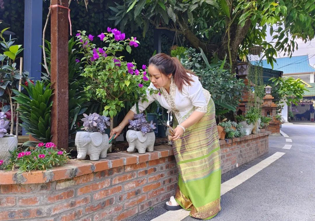 “回想起以前村子的环境,真的是苦不堪言,又脏、又乱,家家都养鸡养鸭,很臭,味道很大。”曼洪村村民玉庄香告诉记者,自从打造绿美乡村以后,村里修了新路,有了路灯,而且每家都有自己的小庭院,“现在出门,到处是花花草草,大家心情都变好了”。