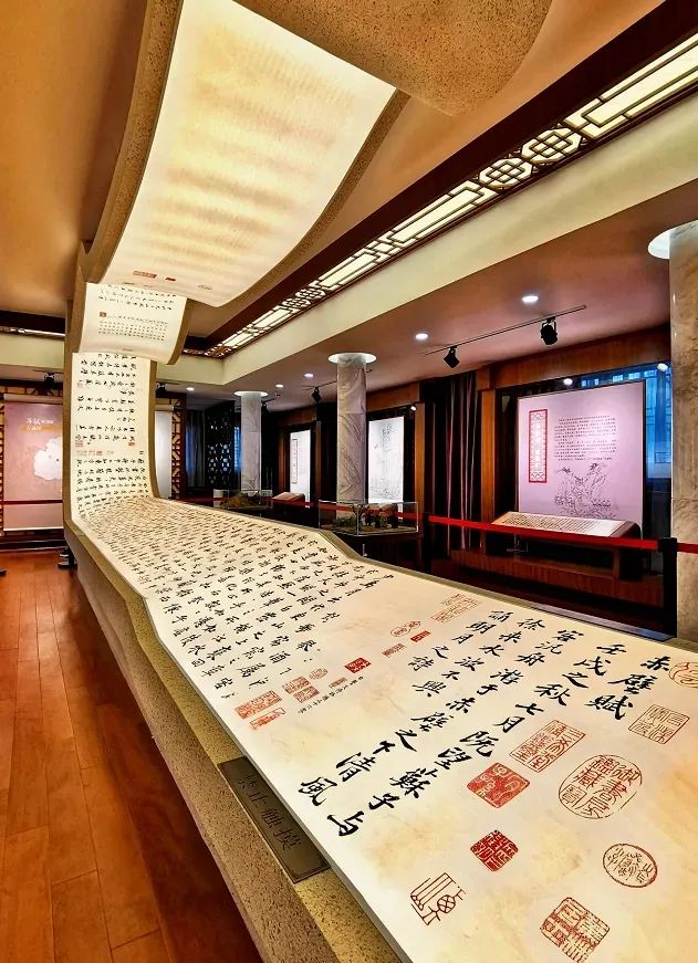 “惟江上之清风,与山间之明月,耳得之而为声,目遇之而成色,取之无禁,用之不竭。”在巨型卷宗雕塑《赤壁赋》前,讲解员介绍苏轼的诗句,“苏门一门是父是兄是弟,眉山万仞立德立功立言。”眉山厅以“一门父子、三大文豪”为主题,介绍苏轼家庭成员的构成,从苏轼的求学事迹、恩师、父母、兄弟姐妹等层面,追本溯源“清官苏轼”“文豪苏轼”的成长历程。