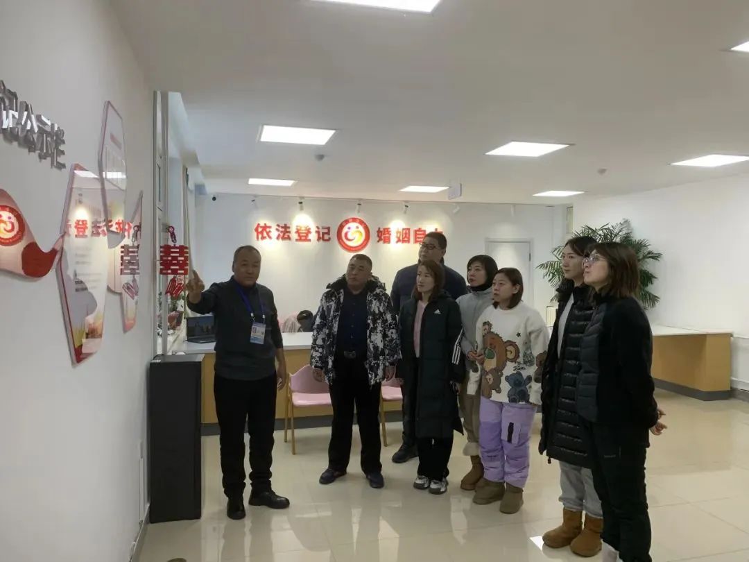近日,哈尔滨市南岗区民政局一行10人来到松北区太阳岛婚姻登记处,参观学习“景区公园”婚姻登记处建设经验和做法。