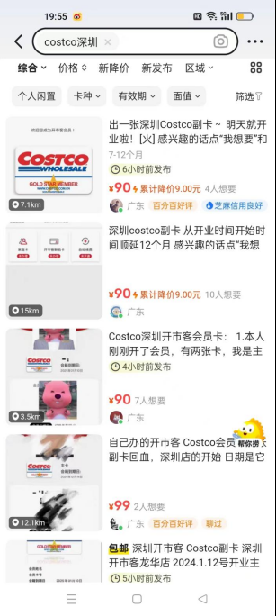 深圳Costco开市客还没开业,会员卡就在网上卖火了。日前,读特记者收到市民爆料称,有人在网上低价转售Costco开市客亲友卡,买家拍下商品后提供手机号码和个人身份信息给卖家,就能成为该商场的会员。对此,商场工作人员表示,不建议通过这种方式购买会员卡。“主卡会员一旦退卡,亲友卡也会停用。”