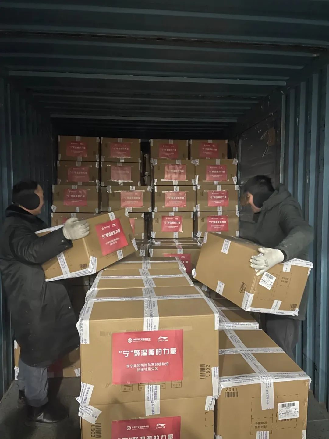李宁集团在援助甘肃灾区的同时也在调配爱心衣物发往青海、新疆等地,为那里的受灾群众送去冬日的温暖守护。