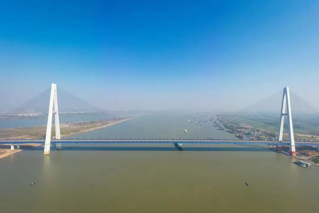青山长江大桥全长7548米,桥面宽48米,设双向8车道,预留2车道,通行时速120公里。大桥的跨度、宽度、高度都堪称世界之最——主跨938米,是目前世界上跨度最大的全漂浮体系斜拉桥;桥面宽48米,是目前长江上桥面最宽的桥梁;主塔高279.5米,是目前世界上最高的“A”型塔。