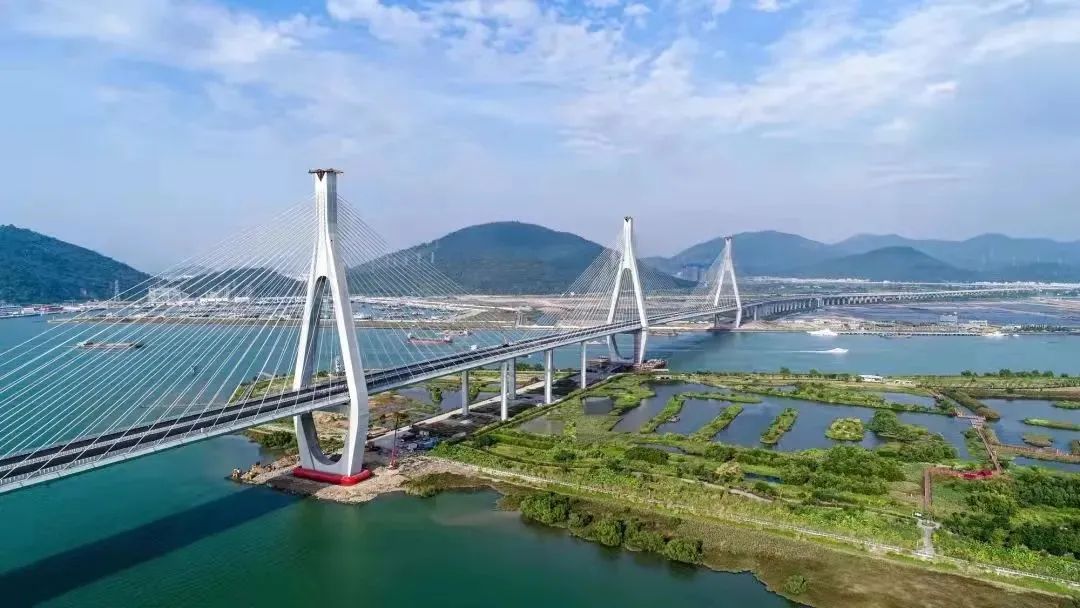 洪鹤大桥工程是珠海“八横十一纵”主干线之一,是广东省的重点交通工程。大桥路线全长9.654公里,为双向六车道高速公路,主桥采用两座主跨500米的双塔双索面叠合梁斜拉桥串联而成,是目前世界上最大跨度串联式斜拉桥。