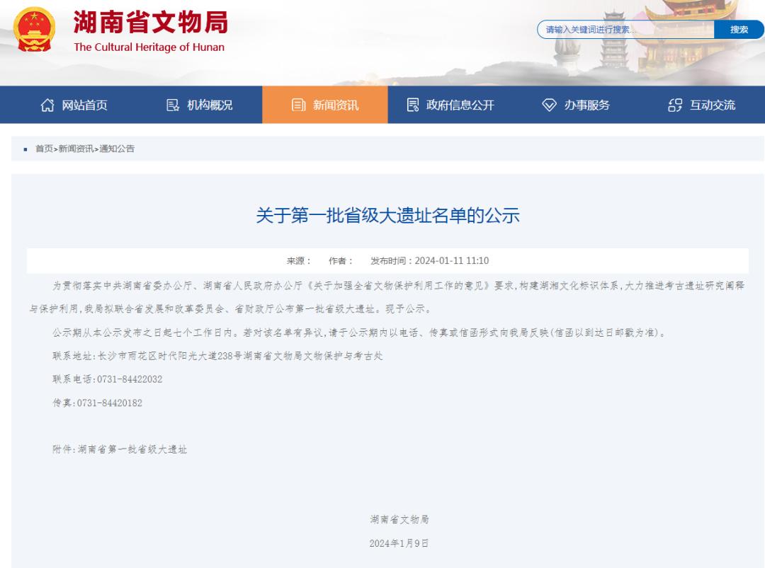 湖南省文物局公示了