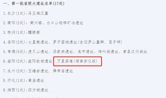 原标题:《喜讯!万里茶道(湖南安化段)入选第一批省级大遗址》
