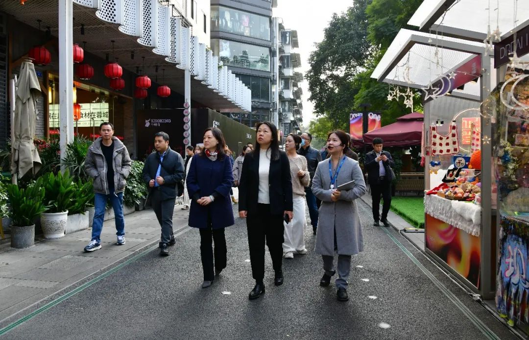 周新一行先后来到望平坊、九眼桥酒吧街、宽窄巷子等成都地区特色商业街区,详细了解各街区的历史沿革、规划理念、业态布局以及运营模式,深入学习街区在城市更新改造、商业业态引导、公共空间维护、自治组织培育等方面的经验做法,为我区打造全国示范步行街提供先进思路。