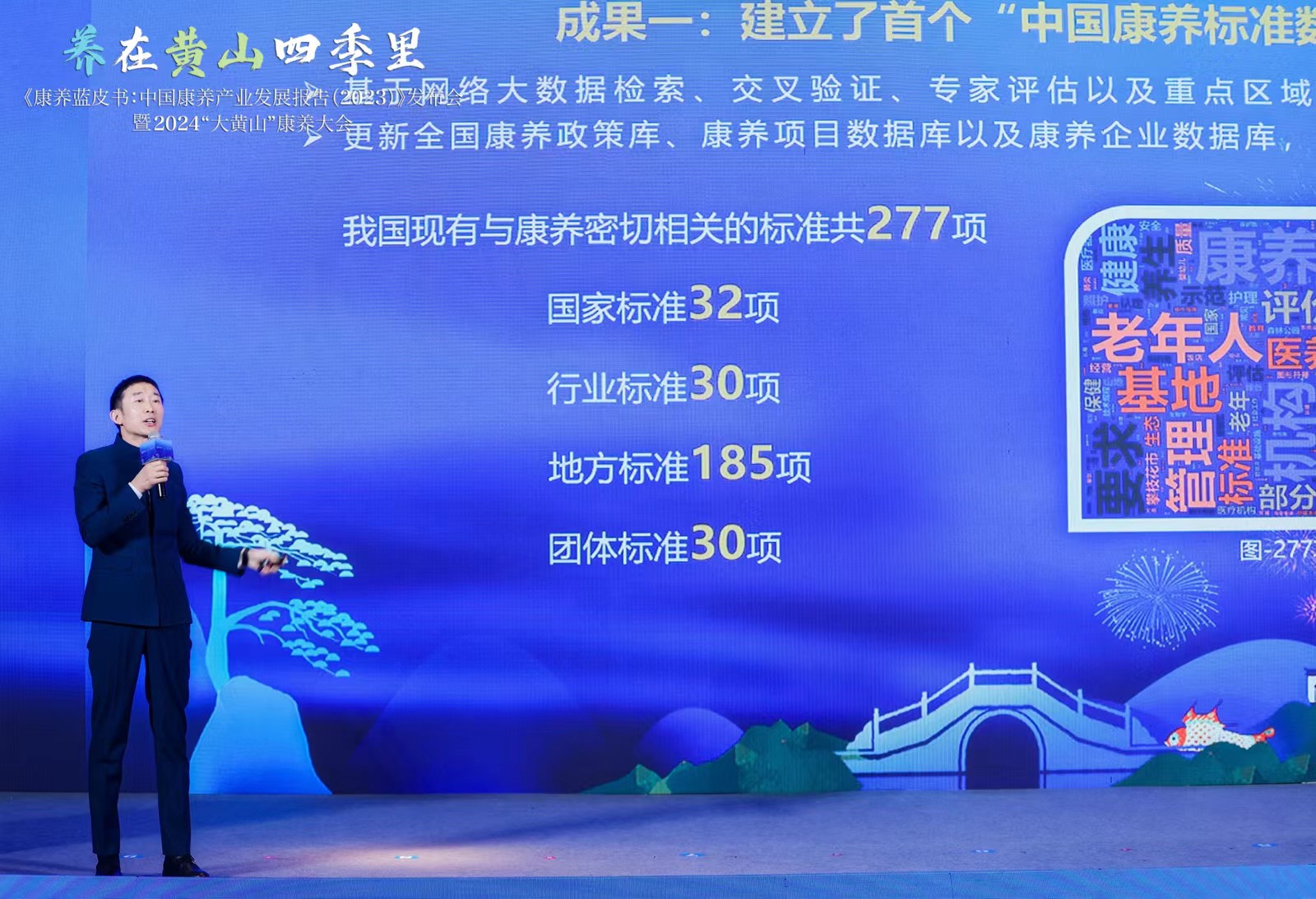 为推进健康中国战略行动、积极应对人口老龄化、推动康养产业标准化建设与高质量发展,2024年1月15日,由中山大学旅游学院副院长何莽担任主编、社会科学文献出版社出版发行、中国老年学和老年医学学会联合发布、聚焦康养标准与市场规范的第六部《康养蓝皮书:中国康养产业发展报告(2023)》在黄山市举行隆重发布会。