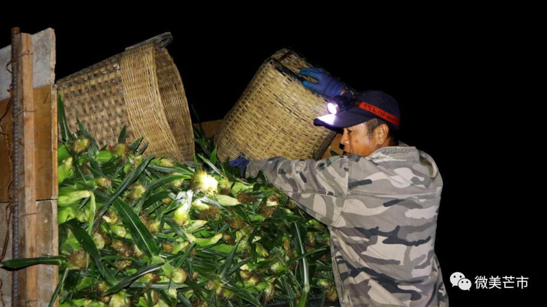2023年11月,在芒市风平镇腊掌村、芒赛村、遮放镇户弄村等一批“玉米村”的田间,成片的鲜食玉米已经进入了成熟采摘期。村民们通常在凌晨时分采摘,以最大限度锁住玉米的水分,全市各大冷库连夜收购、包装、装车,第一时间把玉米发往全国各地。