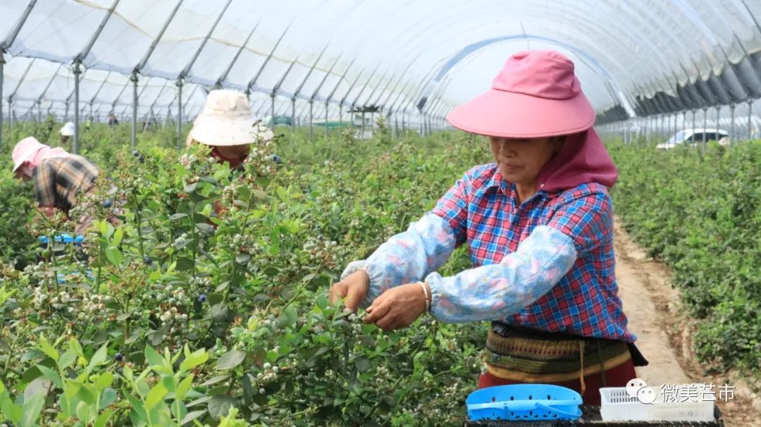 走进位于芒市风平镇的南相章蓝莓种植基地,工人们正在忙碌地采摘着成熟的蓝莓,并第一时间进行打包分装。2020年,芒市成功引进蓝莓产业龙头企业佳沃集团落户,在芒市风平镇、遮放镇、西山乡建立了南相章、杏焕、允广等多个蓝莓种植基地。经过3年多的发展,全市蓝莓种植面积已扩大到4520亩,2022年至2023年产季实现产量2567吨、产值2.05亿元。