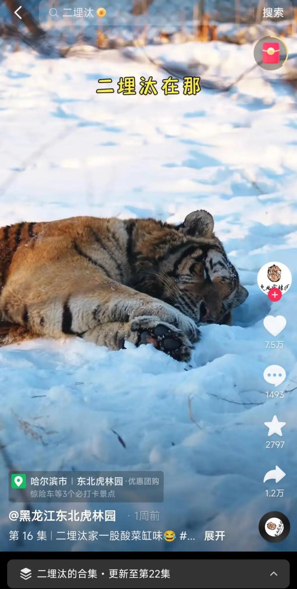 东北虎林园里的“二埋汰”通过抖音让各地的网友看到了“东北虎本虎”到底是咋埋汰法,成功出圈变“网红”。