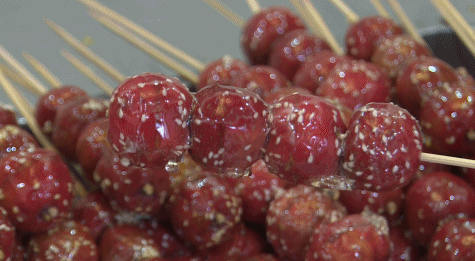 说着,张鑫美给记者现场展示了冰糖葫芦制作的过程,经过熬制糖浆、蘸糖等步骤,一串串晶莹剔透的糖葫芦就做好了。
