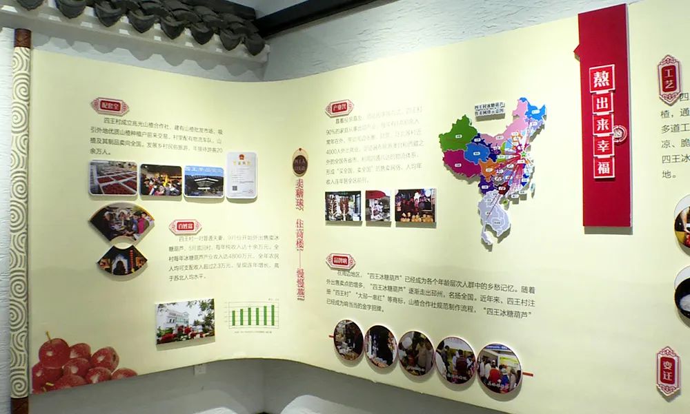 在四王村村史馆,记者了解到,四王村“两委”班子的带头人发挥的先锋模范作用,是该村冰糖葫芦产业经济发展的重要推动力,过去一些老党员创立山楂合作社来带领年轻党员一起创业致富,把四王村冰糖葫芦产业的名号打响,才有了如今的支柱产业。