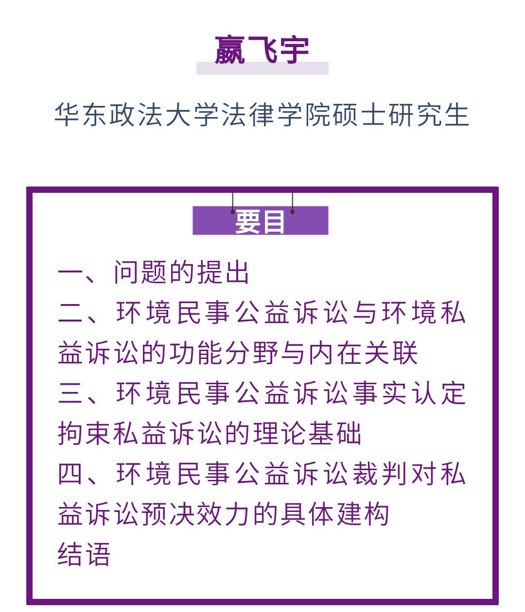 原标题:《嬴飞宇|论环境民事公益诉讼裁判对环境私益诉讼的预决效力——兼评《环境公益诉讼解释》第30条》