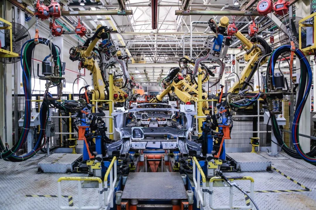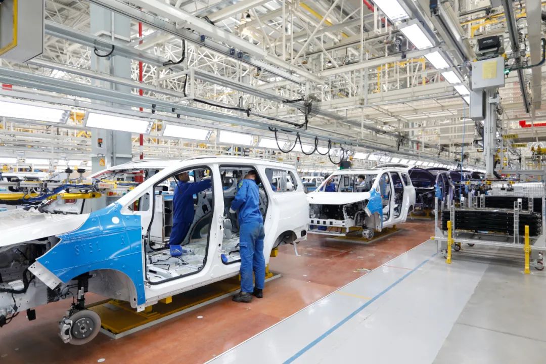 一卷卷特种钢材在冲压车间内被压铸成钣金零件,进入车身车间焊接成高强度车身,再进入油漆车间上色,最后在智能化总装车间内通过自动化设备安装座椅、轮胎、天窗等零件,一辆辆崭新的电动MPV随之缓缓驶出检测线……