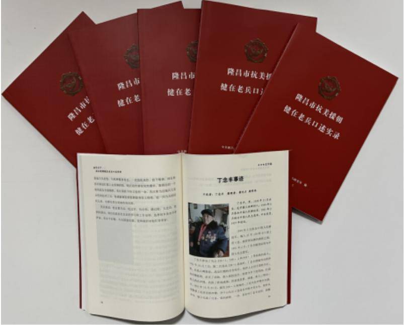 红色书籍编纂。通过查找档案、实地走访、录音、摄影等形式进行史料挖掘,历时一年零四个月,将隆昌市90余名健在的抗美援朝老兵口述资料整理形成《隆昌市抗美援朝健在老兵口述实录》。全书共四万五千余字,是目前全省第一本较全面记录抗美援朝老兵在朝作战、生活情况的口述书籍。该书发至全市各机关单位、镇(村)干部以及学校、企业等,为广大党员干部、青少年和群众了解抗美援朝精神提供坚实载体。