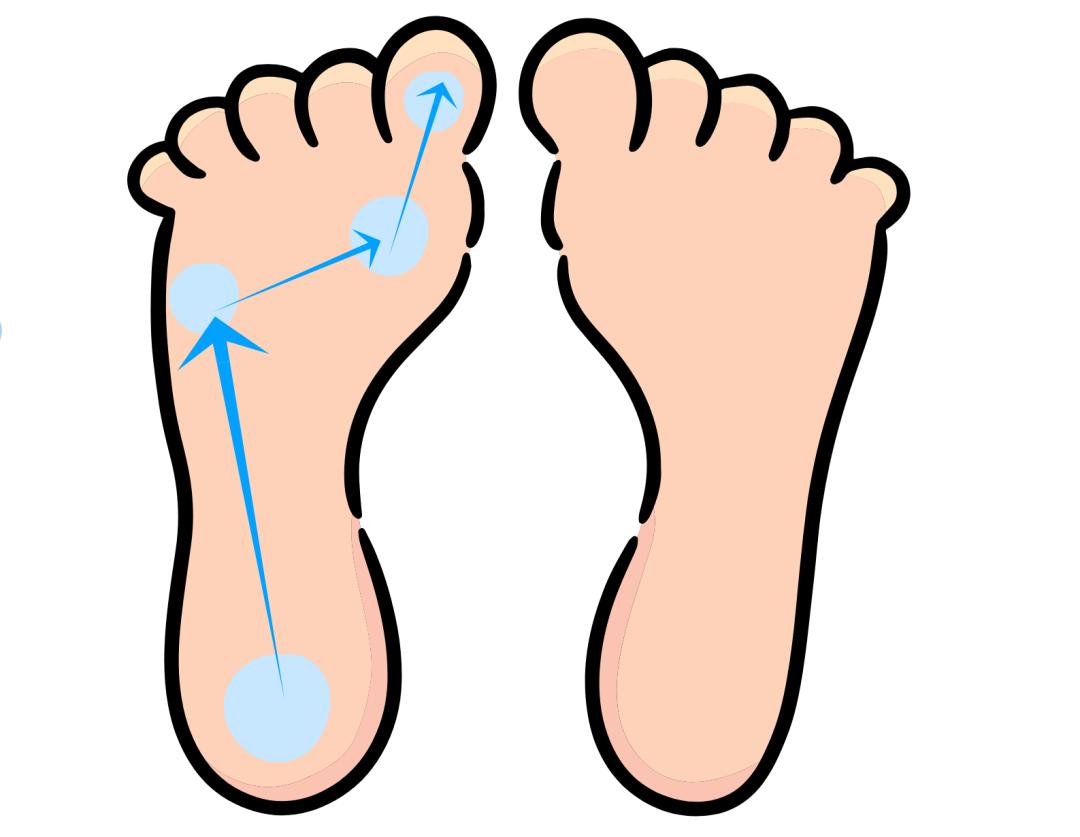 人走路的方式与足弓的特点息息相关,从脚跟落地到脚掌离开地面,足底接触地面的顺序依次是:外足弓——横足弓——纵足弓,而足底落地的顺序如下:
