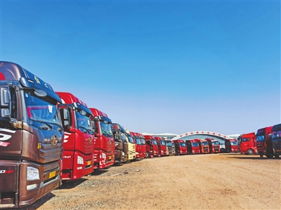 整装待发的货车。 本报全媒体记者 付强 摄