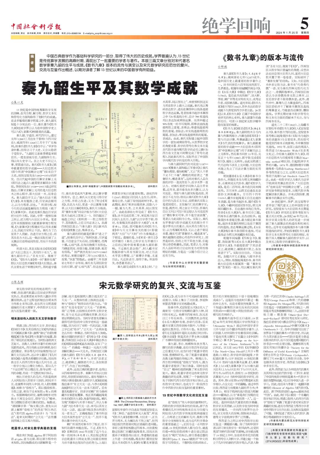 本期文章系国家社科基金冷门绝学研究专项学术团队项目“《数书九章》校勘与研究”(21VJXG022)阶段性成果