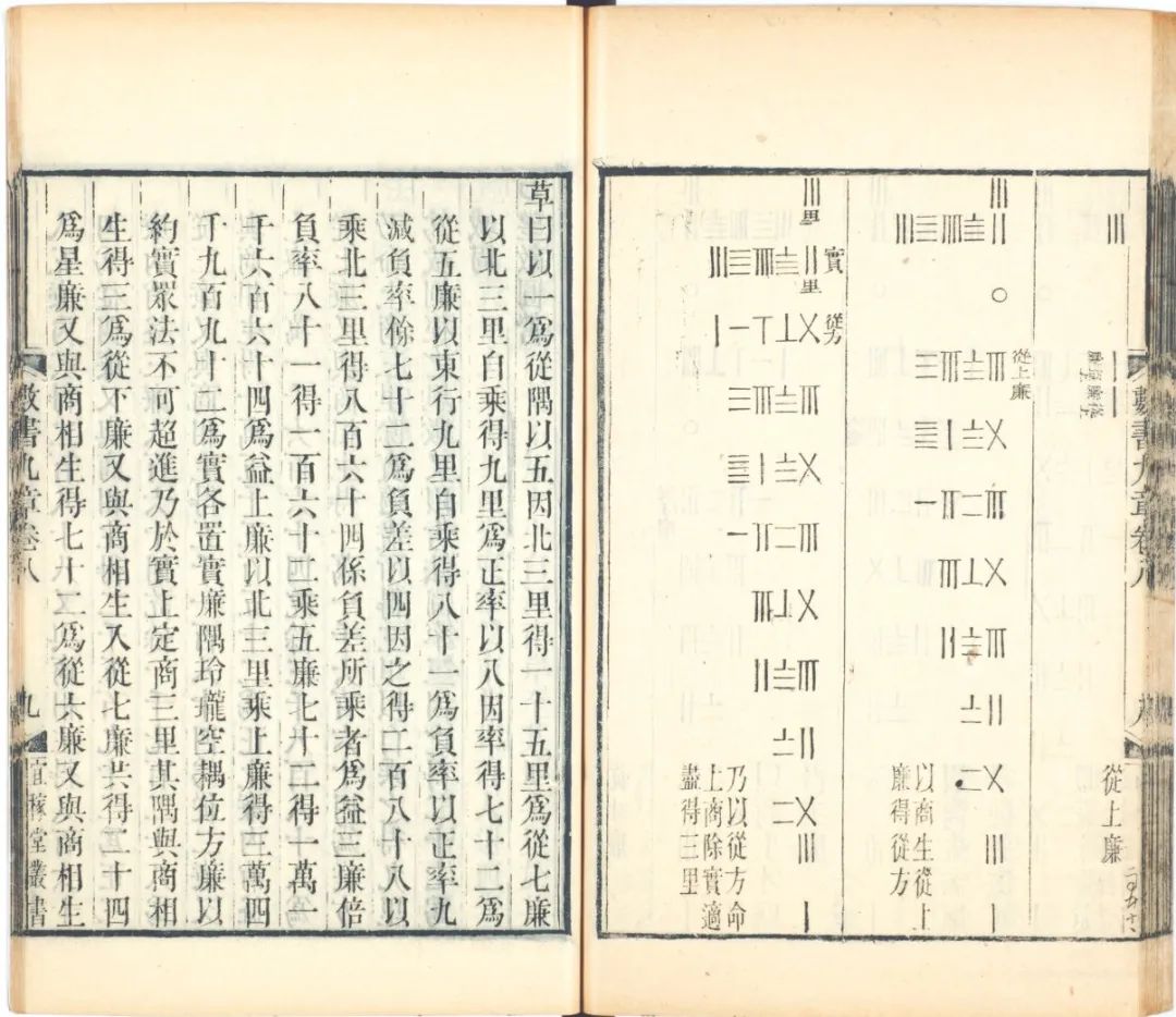 现在我们知道,algebra源于阿拉伯语al-jabr,意为还原,即还原方程中的未知数。因而梅瑴成的词源解释是一个误解,他只是根据明人偶尔提及的“立天元一”,从整体性质上推测出这是一种与“借根方”相类似的代数方法。“借根方”有没有受到“立天元一”的影响,须广泛考察、比较相关的中外文数学史料,至今还无法证明确有其事,但无论要证明抑或证伪,当时学者首先要解决获得可读可信的中文数学史料这一基础问题。因为经历了有明一代的沉寂,天算之学已成“绝学”,“立天元一”法具体是怎么样的一种算法,当时并没有人知晓。解决问题的转折在于《四库全书》的编纂,四库馆臣从《永乐大典》中辑出李冶的《测圆海镜》和《益古演段》,证实了“立天元一”的确是一种建立一元高次方程求解的算法——天元术。四库馆臣又辑出秦九韶的《数书九章》(又名《数学九章》,以下简称“秦书”),并将“误者正之,疏者辨之,颠倒者次序之,各加案语于下”,作出了初步校勘。