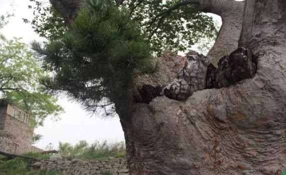 而更令人惊叹的是,在其树干分枝处生长着一株油松,和大果榉相依相偎,形成天然“榆抱松”景观。其无论从树龄、海拔、胸围、树高、冠幅、生长势、生长环境等任何一方面来看,炉峰山大果榉均十分的稀有,在华北乃至全国都十分罕见。因此在2018年全国最美古树遴选活动中,炉峰山大果榉被评为“最美大果榉”。