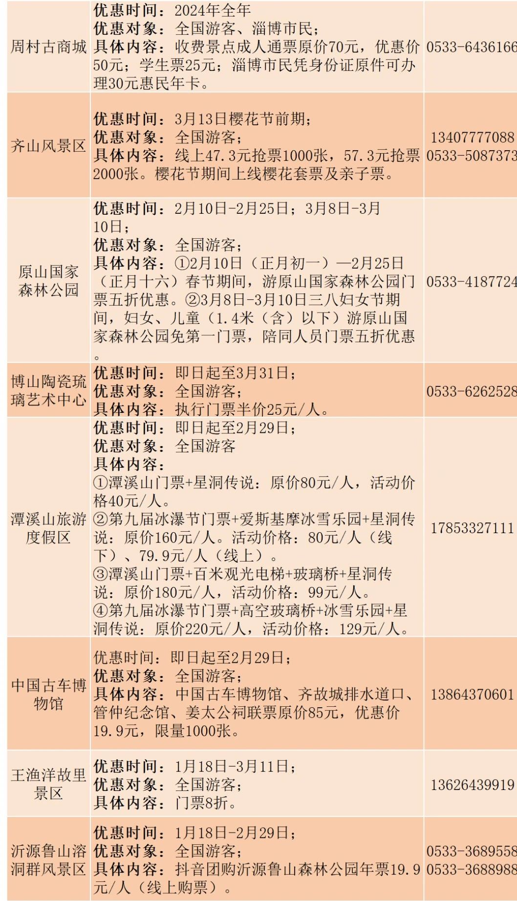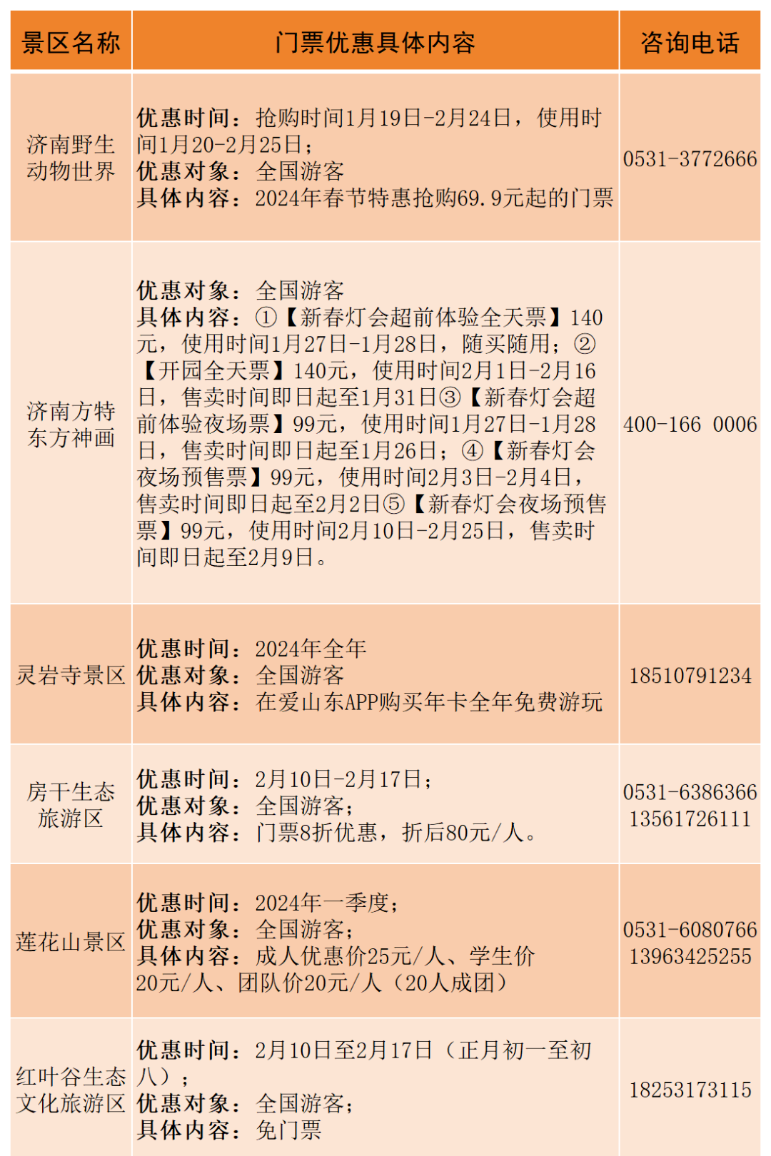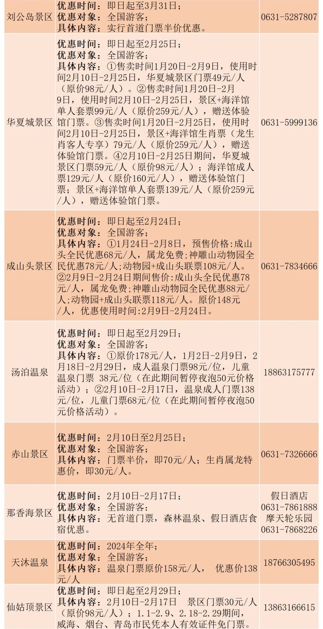 为丰富大家假日生活,营造欢乐喜庆的节日氛围,春节前后山东216家A级旅游景区推出免票、打折、联票优惠、二消优惠等优惠措施。