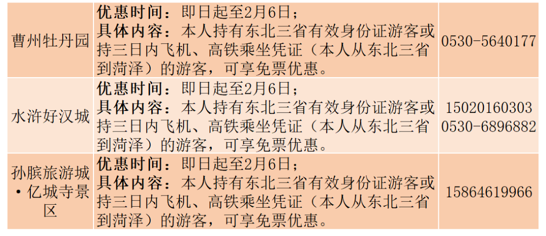 如果是东三省的老铁来,菏泽曹州牡丹园、水浒好汉城等地已经准备好了专属免票福利,优惠多多、诚意满满,这个春节出游来山东就GO啦~