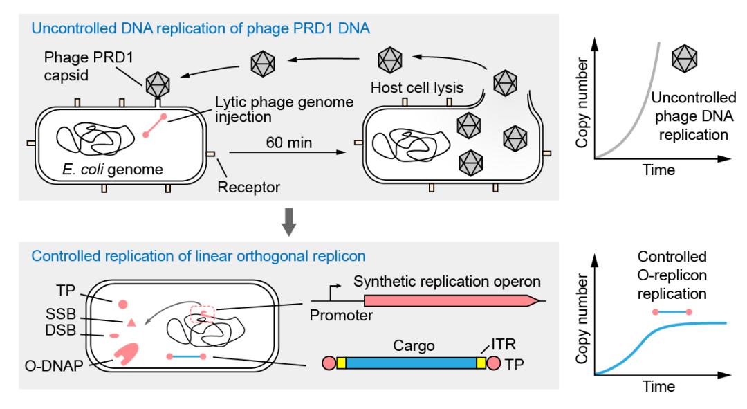 大肠杆菌作为目前研究最透彻的细菌,广泛用于基础科学研究和工业生产,具有生长快速(倍增时间仅约20分钟)的特点,是基因克隆和蛋白质表达的首选宿主。在过去的十年里,在大肠杆菌中开发一套稳定的正交复制系统,从而在该宿主内实现加速连续进化过程成为重大挑战。尽管已有诸多尝试,在大肠杆菌中还未能开发出稳定的正交复制系统。
