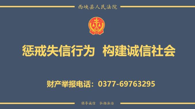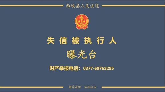 如发现下列失信人有财产可供执行或有拒不履行生效法律文书的行为,请向西峡县人民法院举报,举报电话:0377-69763295。