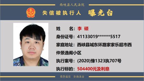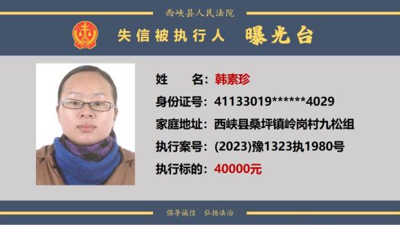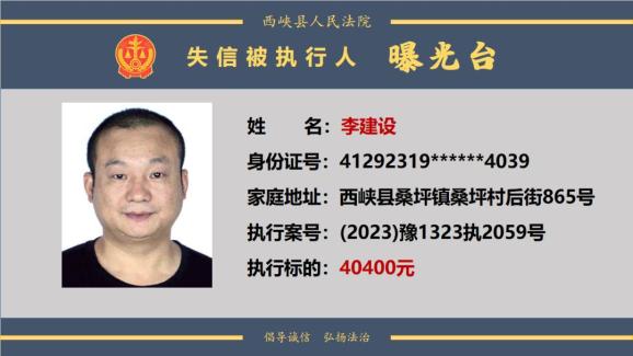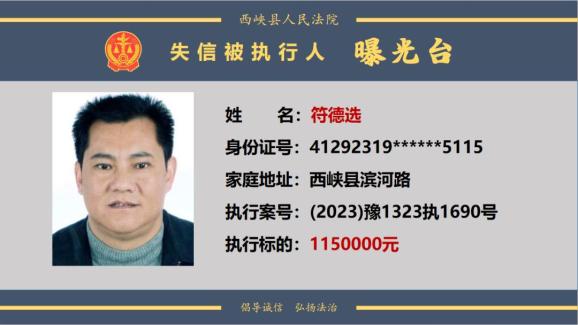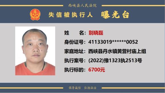 原标题:《曝光台丨西峡法院公布失信被执行人名单(2024年第一期)》