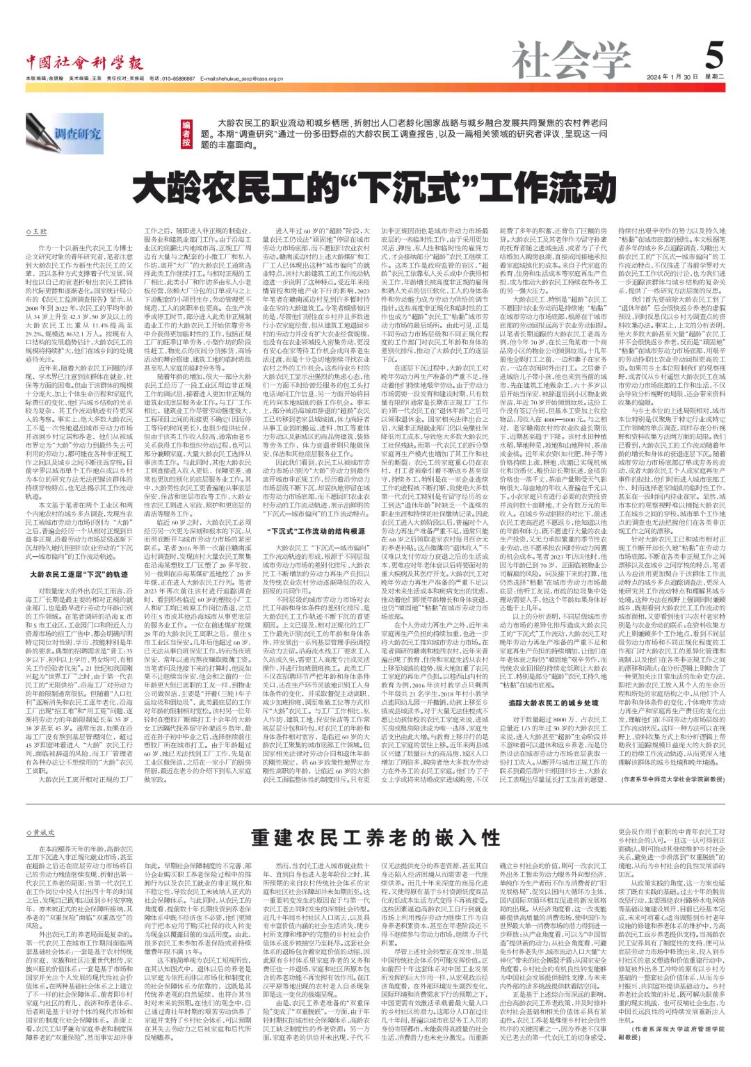 原标题:《调查研究 | 专题:大龄农民工的“下沉式”工作流动》