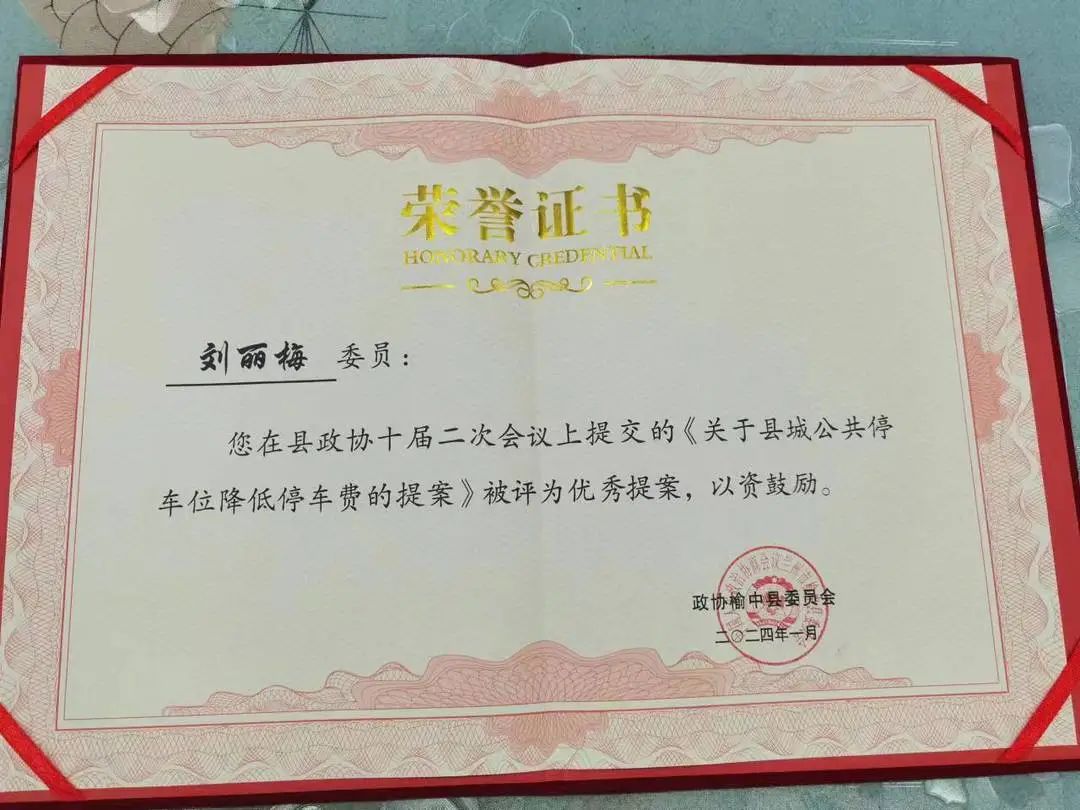“提案工作,承载的是群众的意愿,反映的是基层的诉求,实现的是人民的民主”。刘丽梅在实地走访调研和主动了解社情民意过程中发现县城停车难、停车贵逐渐成为困扰群众的老大难问题,遂认真撰写提案,通过有据建言提出了务实可行的建议,并被采纳落实。2024年1月,《关于县城公共停车位降低停车费的提案》被政协榆中县委员会评为优秀提案。