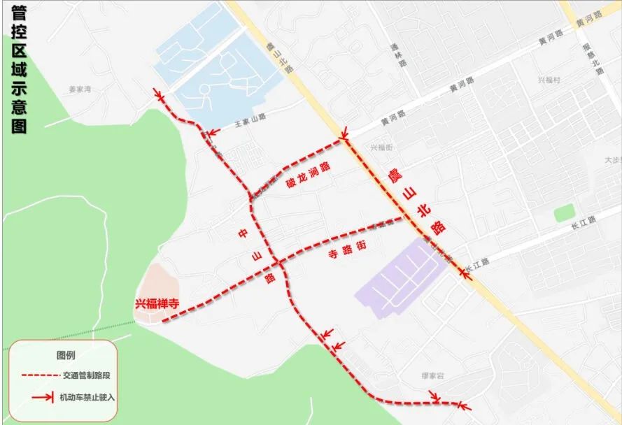 兴福寺区域周边其他道路将根据交通流量适时实施交通管控。