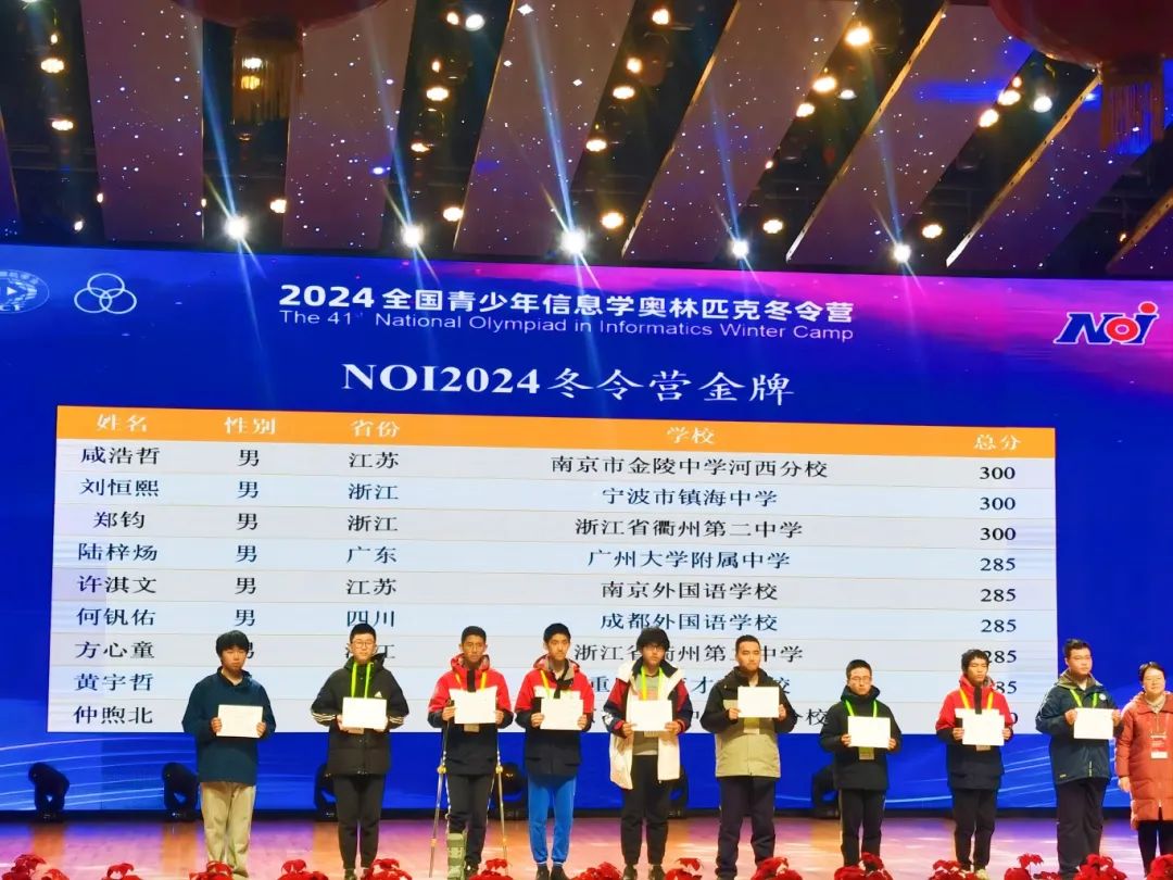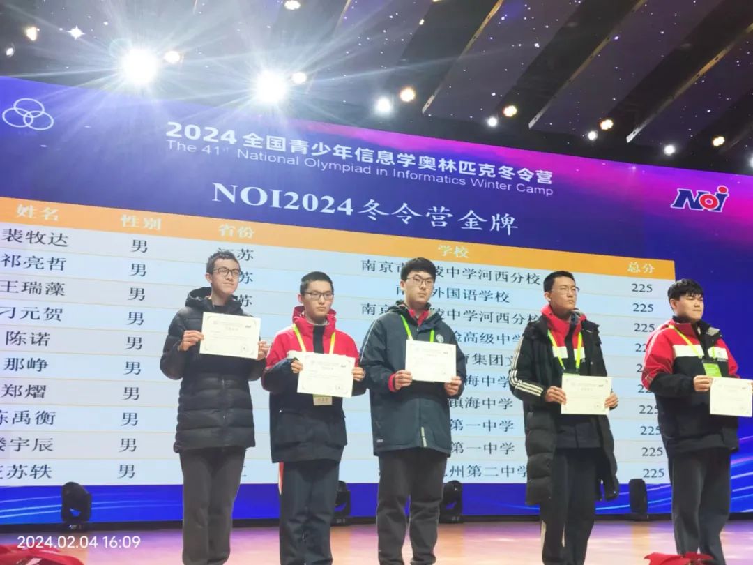 在刚刚闭幕的2024全国青少年信息学奥林匹克冬令营比赛中,来自金陵中学河西分校的信息学学子收获4金2银1铜!
