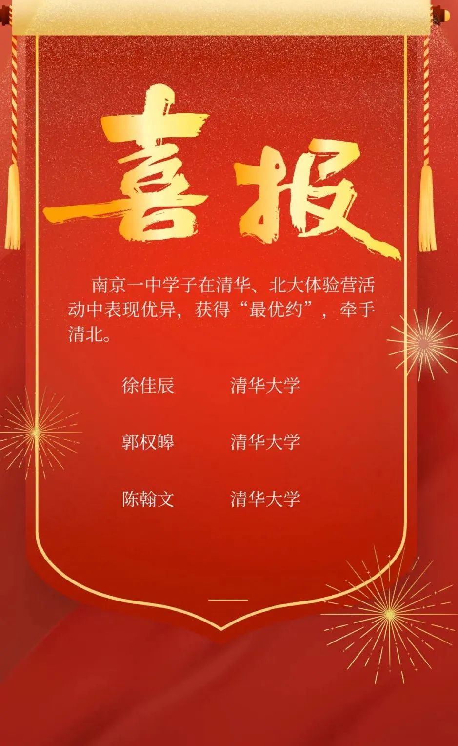 与此同时,在“清华大学计算机系‘大中衔接’研讨与教学活动”和“北京大学全国优秀中学生信息学冬季体验营”中,南京一中邱梓轩、徐佳辰、郭权皞和陈瀚文4名崇文少年表现亮眼,获得“清北最优约”!