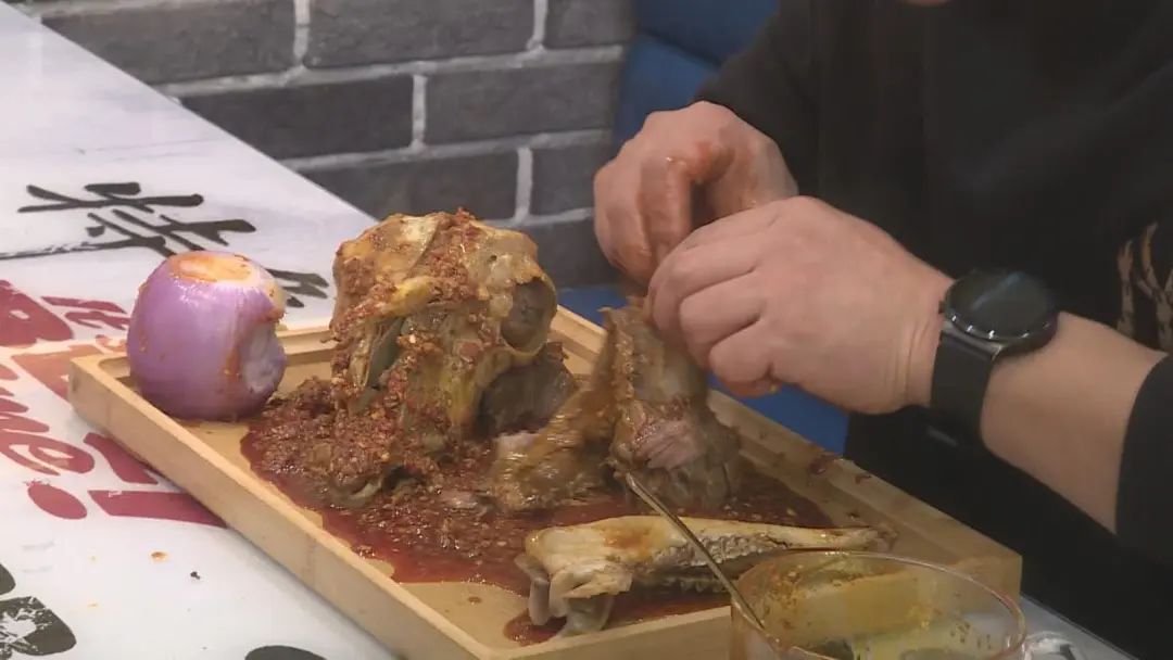 马维成是一位美食博主,在某网络平台上注册的账号已经有100多万粉丝,相较于一些忙着秀颜值、秀技能的网络主播来说,他更愿意秀家乡的美食。2月16日下午,记者来到马维成经营的餐饮店内看到,马维成正在后厨制作卤羊头,他告诉记者,一到饭点不少市民游客会专程赶来“打卡”品尝。