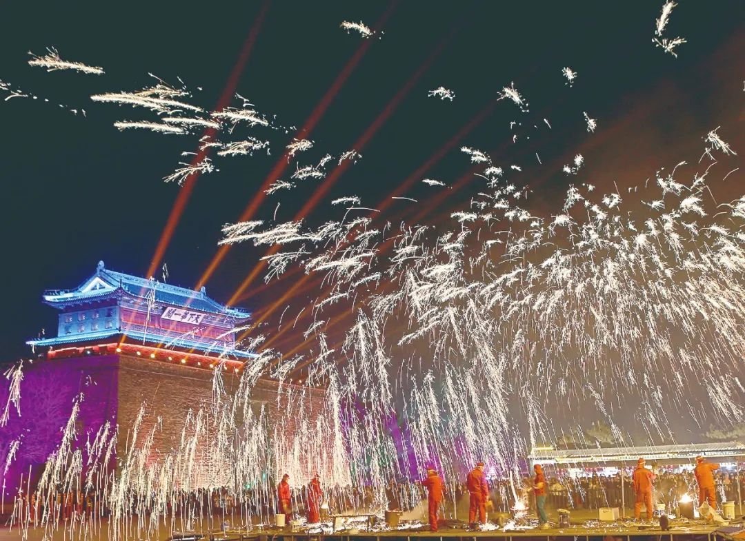 山海关年博会上精彩的打铁花表演。通讯员 刘贵芳 摄