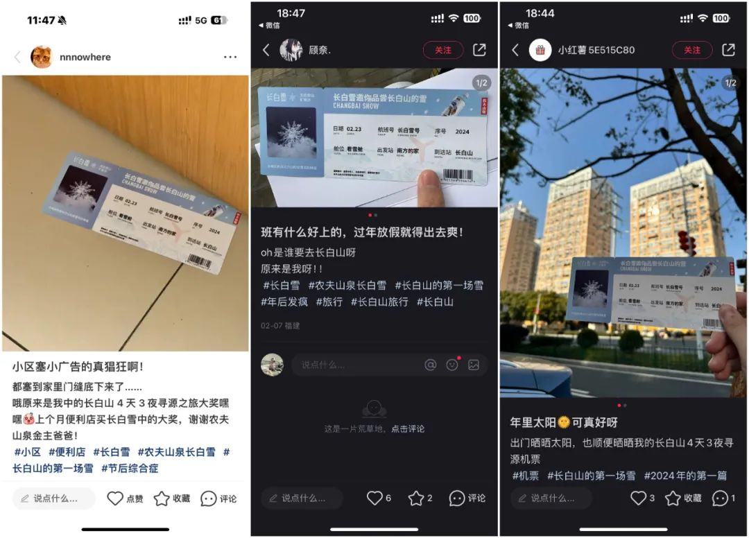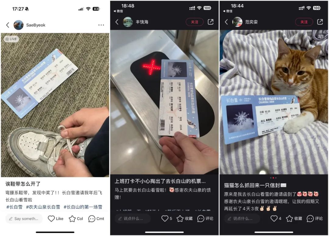 2月23日-26日,农夫山泉招募活动的中选消费者将乘坐飞机,前往长白山和农夫山泉水源地,进行四天三夜的品雪寻源之旅。