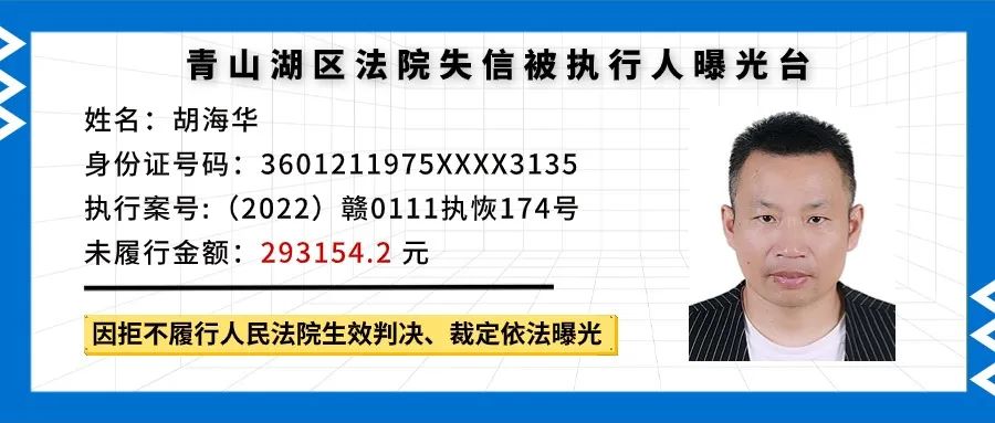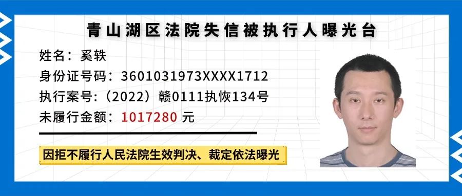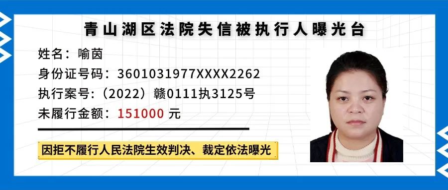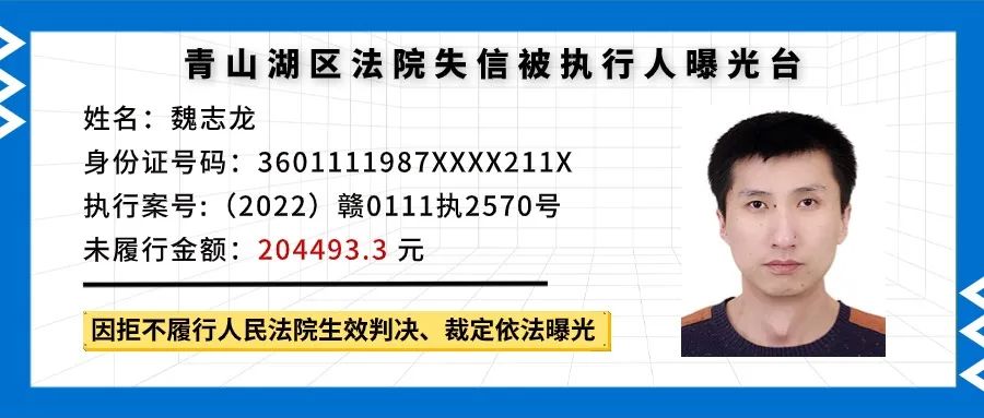 失信被执行人曝光丨这些人欠钱不还!!! 南昌市青山湖区人民法院 轻触阅读原文