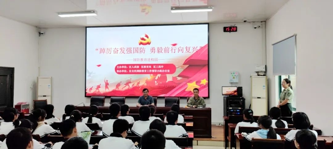 溧水区第三高级中学溧水区第三高级中学是一所省三星级普通高中。学校结合国防教育工作的总体要求,以“军训引路、国防育人、军地密切合作”为指导思想,把德育工作与双拥工作有机结合,深入普及和不断加强国防教育,不定期组织学生参加军事训练营、国防教育军事拓展训练等活动。