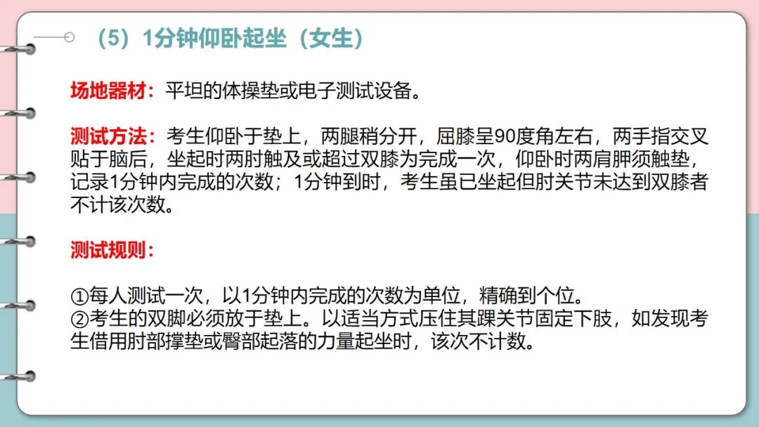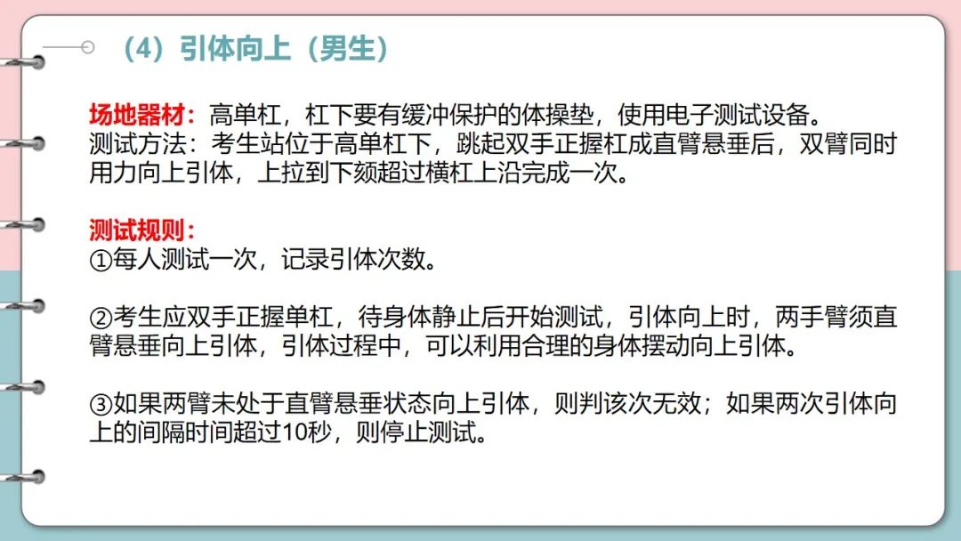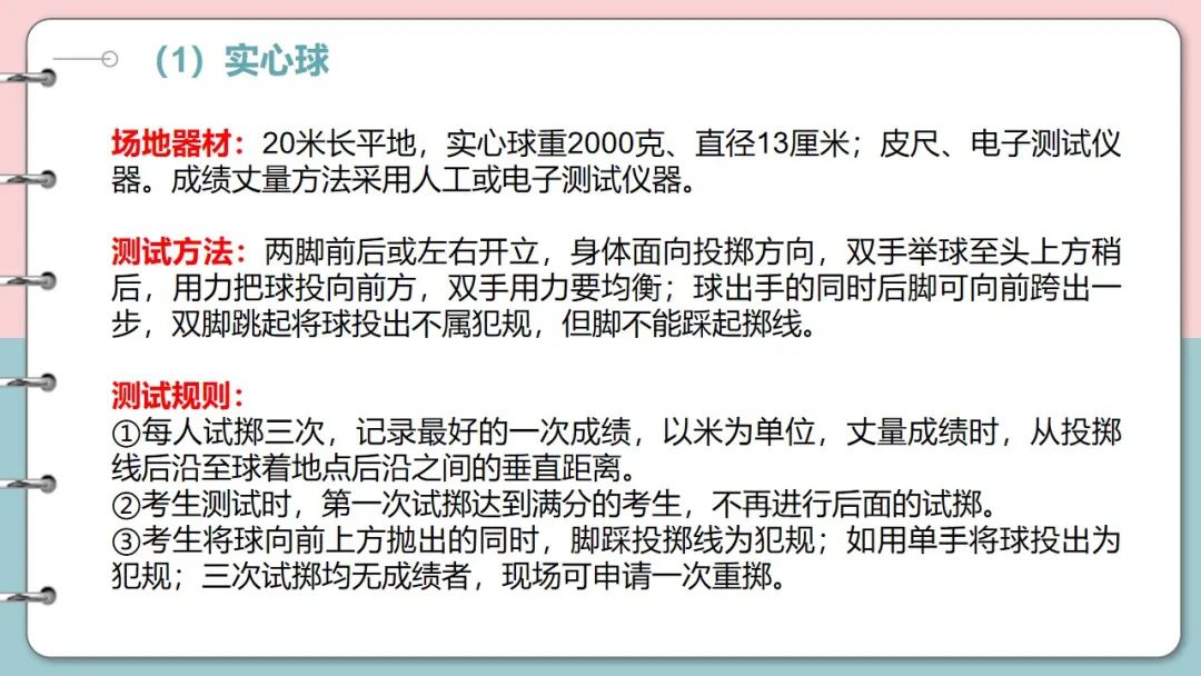第四类(9分):掷实心球、立定跳远、50米游泳、男生引体向上/女生1分钟仰卧起坐。