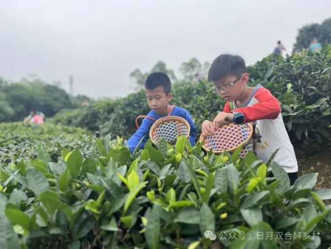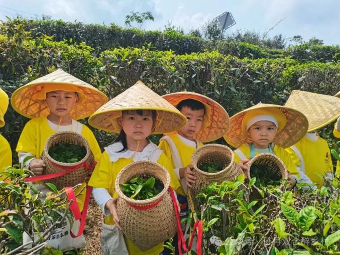 “研学大队”带上草帽、背起竹篓,行走在茶山间,化身小茶农,采茶、制茶、敬茶全体验,一起玩转茶乡“乌托邦”。