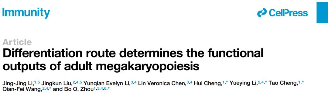 原标题:《【前沿进展】Immunity丨周波/王前飞/程涛/李玥莹/程辉团队发现造血干细胞分化路径决定巨核细胞/血小板的功能多样性》