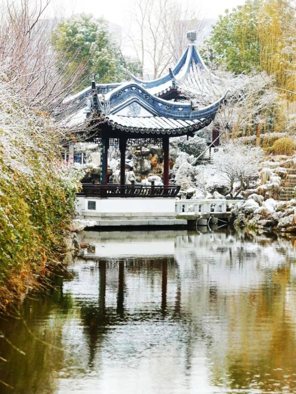 亭台流水,飞檐画廊,南京大学香雪海园首次把苏州古典园林文化精髓和“香雪海”历史人文景观引入国内高校,总面积10970平方米,以梅花为主题,设有梅海、梅诗、流芳三个景区共36个景点,步移景换,诗情画意跃然眼前。该园由近百位南京大学苏州校友共同捐资,历时14年完成,是继百年校庆苏州校友会赠送母校巨幅苏绣《高山流水校友情》之后,献给母校的第二件瑰宝。