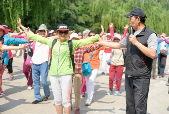 走路时身体挺直,每四步一个循环,前三步时吸气,第四步呼气。运动量因人而异,根据自己心肺能承受的量调整。可锻炼心肺功能。