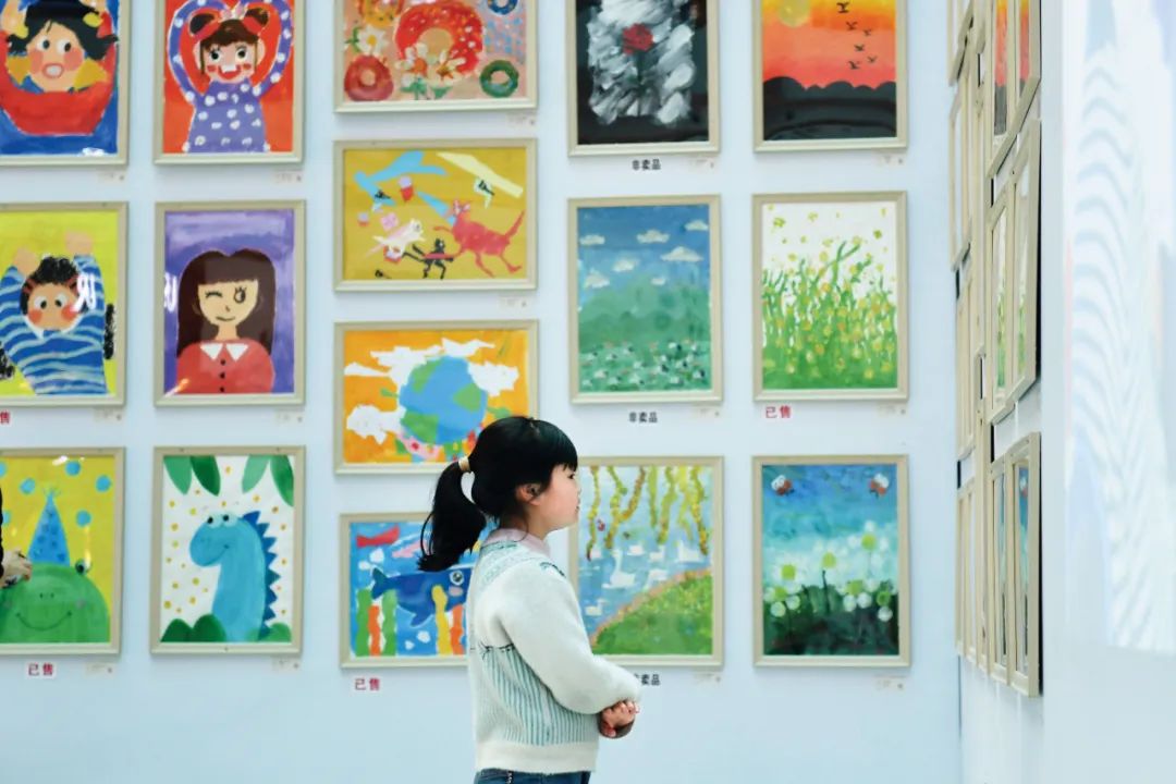 >>小朋友在世界孤独症日主题慈善活动现场观看艺术画作 新华社记者 陈振海/摄