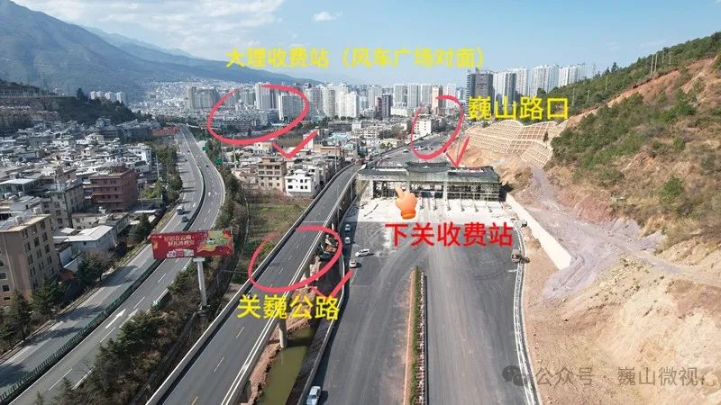 如图所示,下关收费站就位于我们常说的巍山路口附近,紧挨着关巍公路。